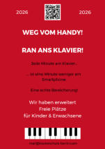 Ein Schnupperkurs zum Kennenlernen und Probieren! Grundschulkinder willkommen! In kleinen Gruppen spielerisch an einem Wochenende die ersten Schritte am Klavier - erste Kenntnisse von Tasten und Noten - gemeinsam Spaß und Üben - lebendig und individuell an separaten Klavieren - Fingersport und erste Lieder. Damit Sie wissen, ob das Klavier das richtige Instrument für Ihr Kind ist. Damit Ihr Kind fröhlich und motiviert mit Freunden die ersten Erfahrungen macht. Damit Sie herauskriegen, ob die kostspielige Anschaffung eines Klavieres die richtige Wahl für die Familie ist. Infos & Termine